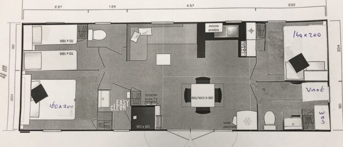 • 2 slaapkamers met tweepersoonsbed en 1 slaapkamer met 2 eenpersoonsbedden.